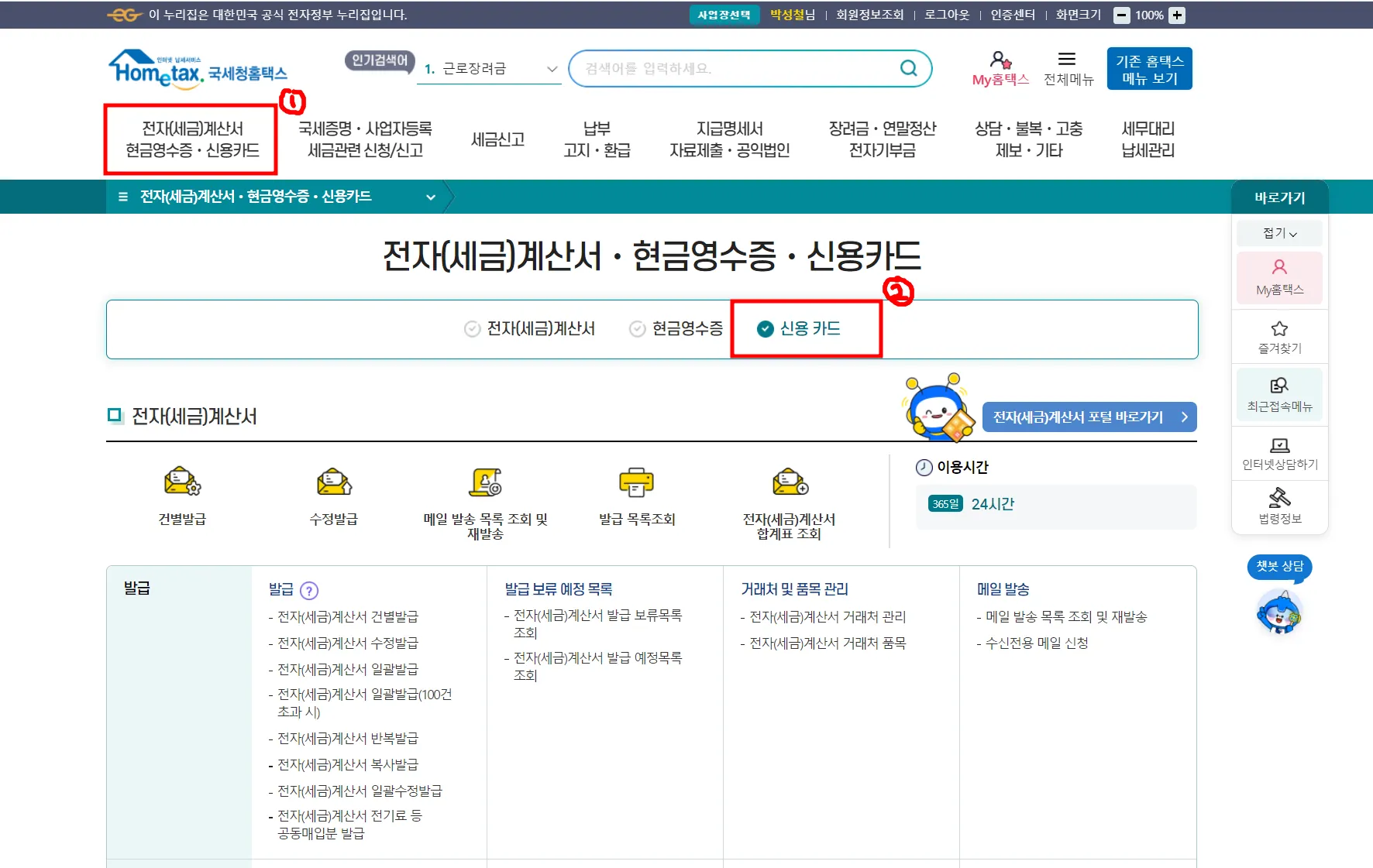 전자(세금)계산서/현금영수증/신용카드 → 신용카드