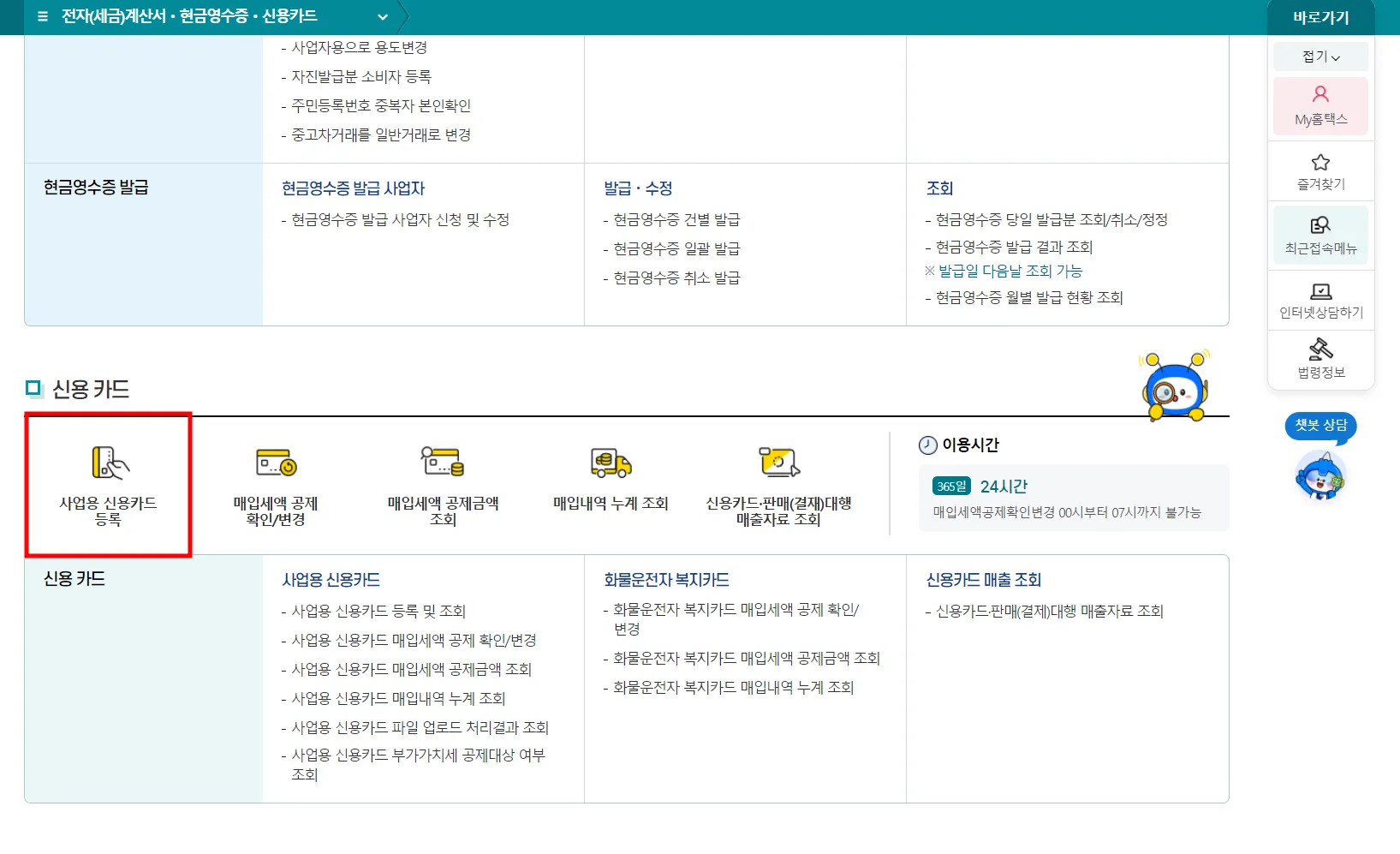 아래 설명을 보시고 사업용 신용카드를 홈택스에 등록해 주세요