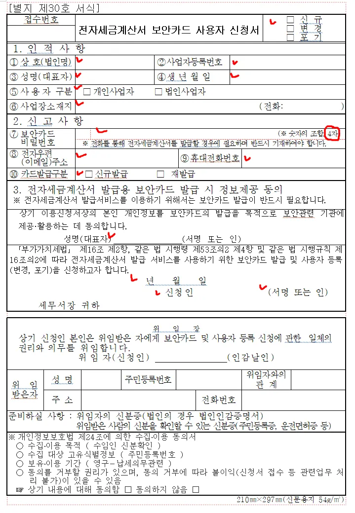 세금계산서용 보안카드는 공동인증서 없이 전자 (세금)계산서를 발행할수 있도록 세무서에서 발급해주는 실물카드 입니다.